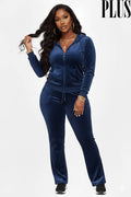 PLUS SIZE VELOUR ZIP UP HOODIE & SWEATPANTS SET